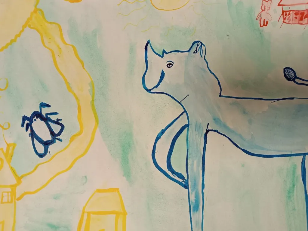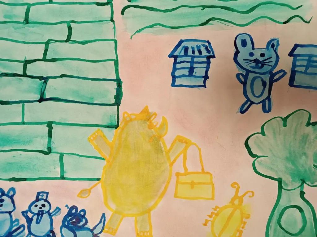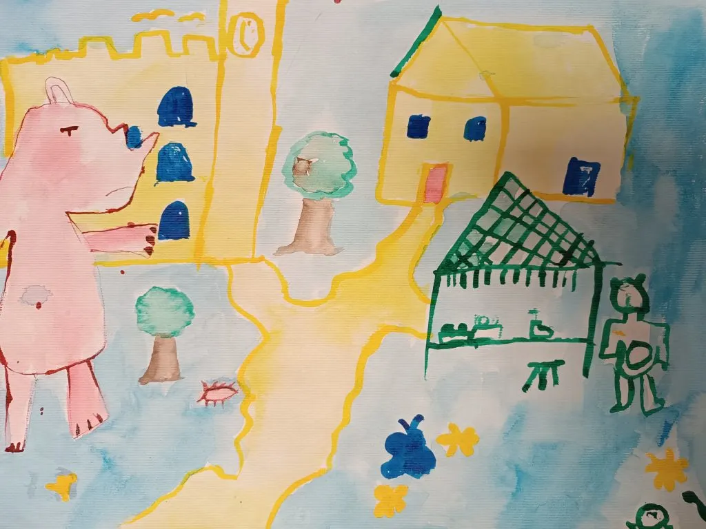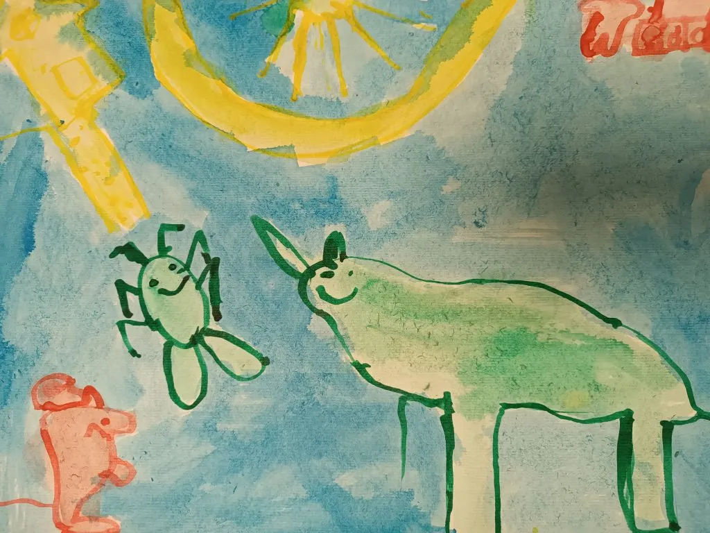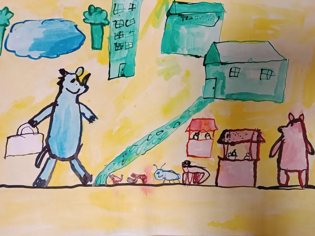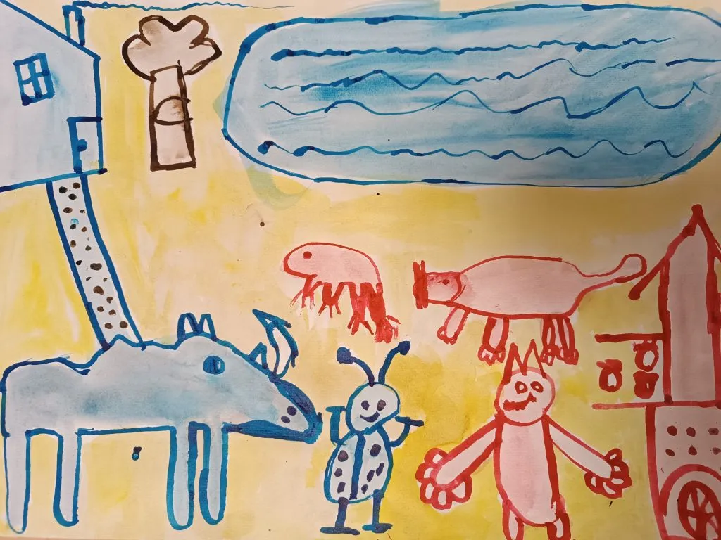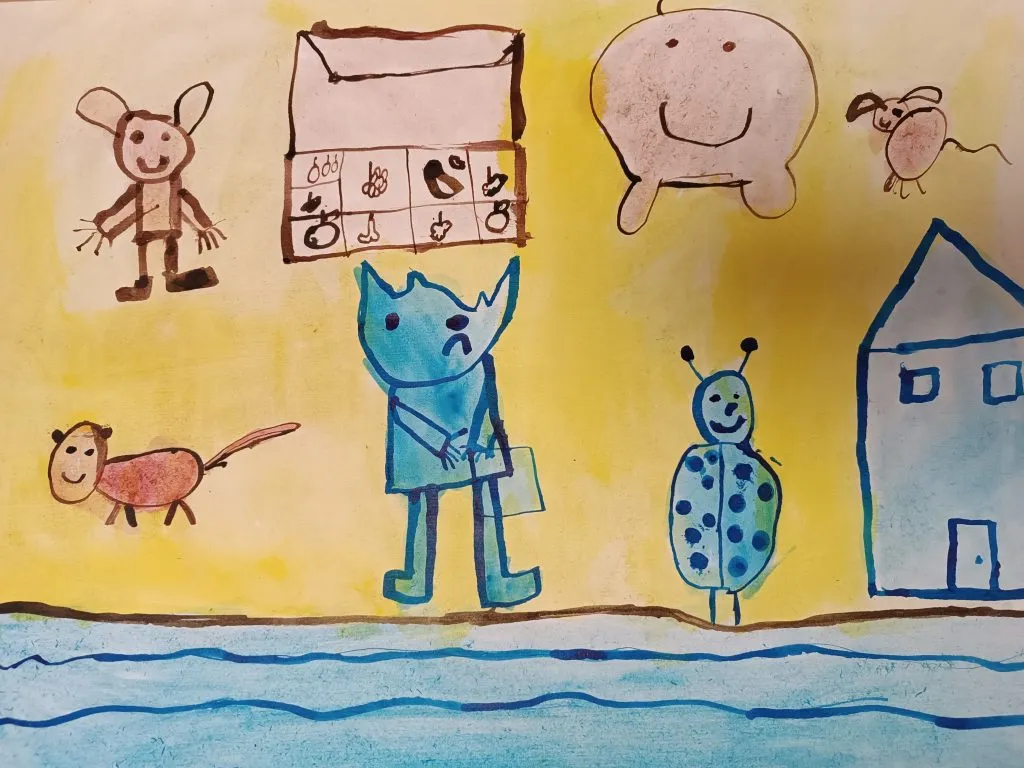 Učenci so prebrani odlomek zgodbe ilustrirali in barvno ponazorili nasprotja.