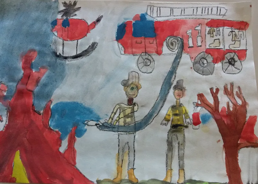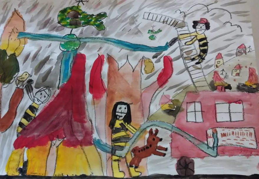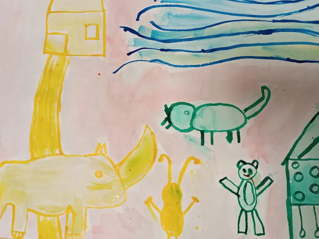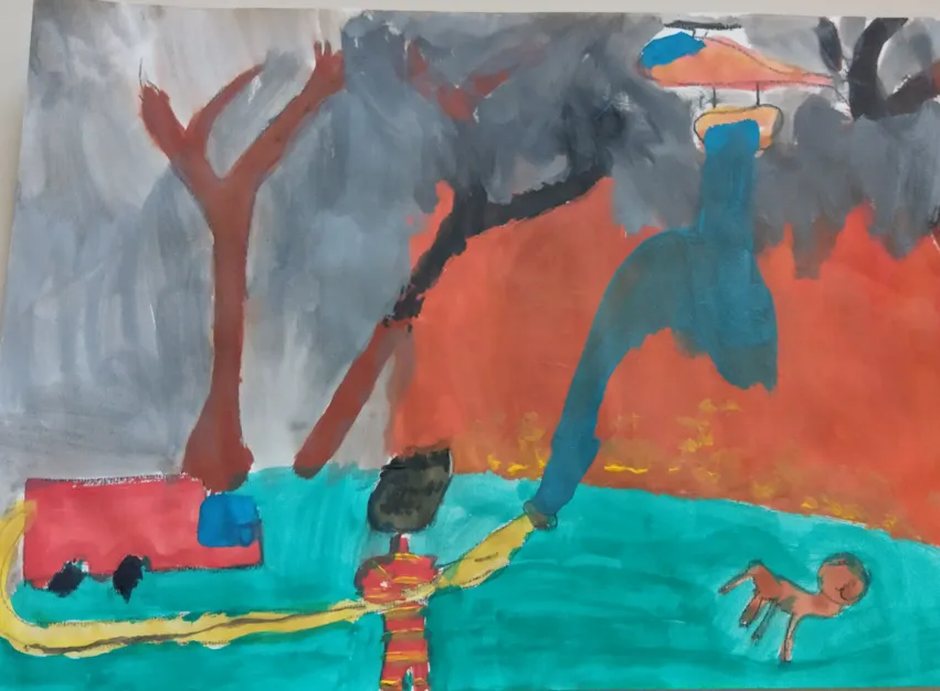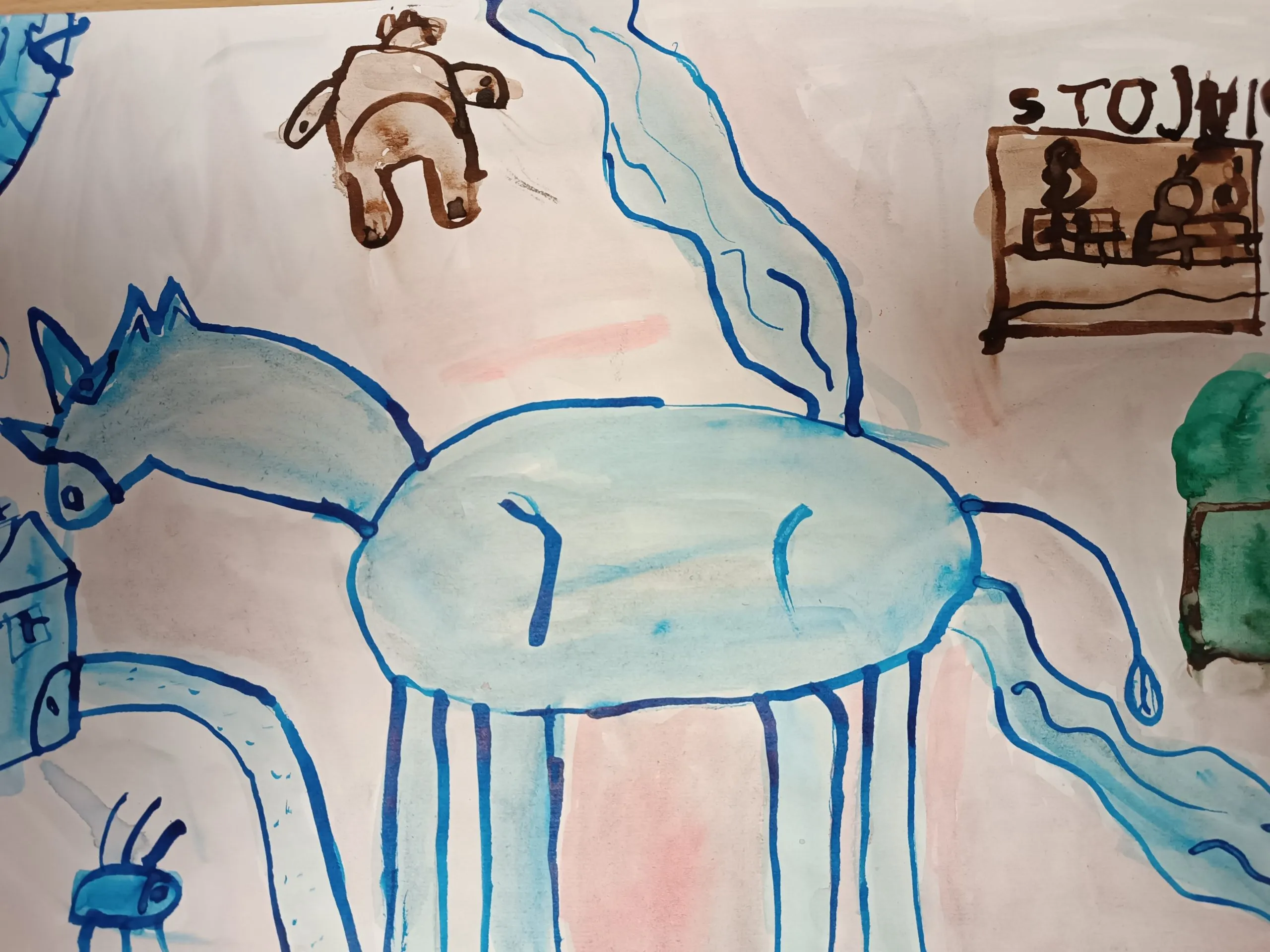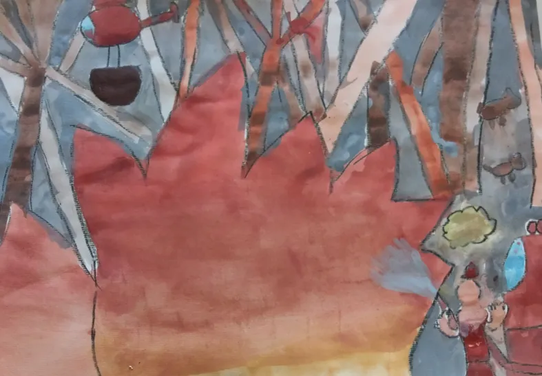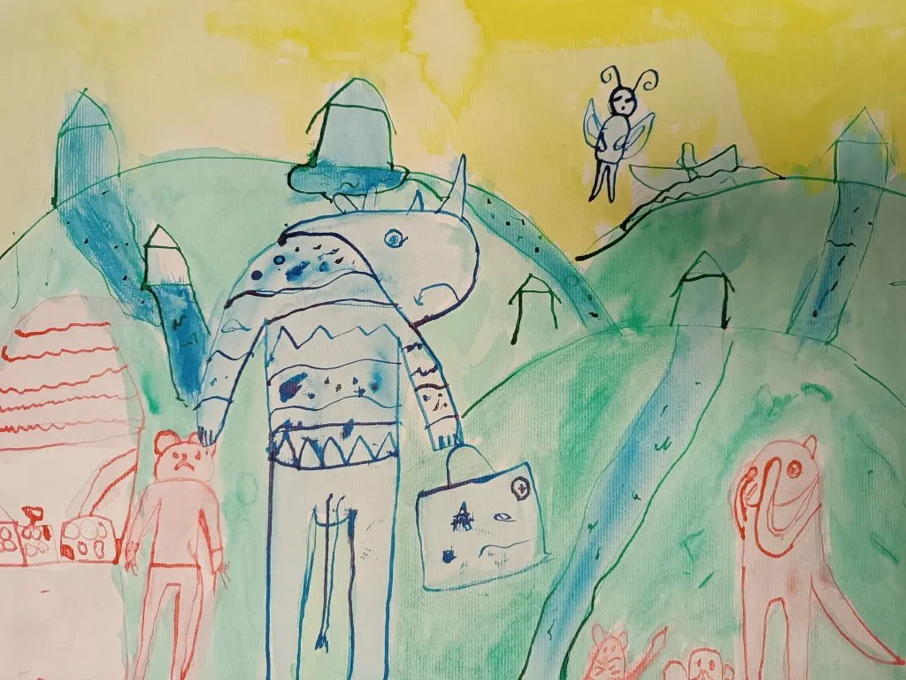 Učenci so prebrani odlomek zgodbe ilustrirali in barvno ponazorili nasprotja.