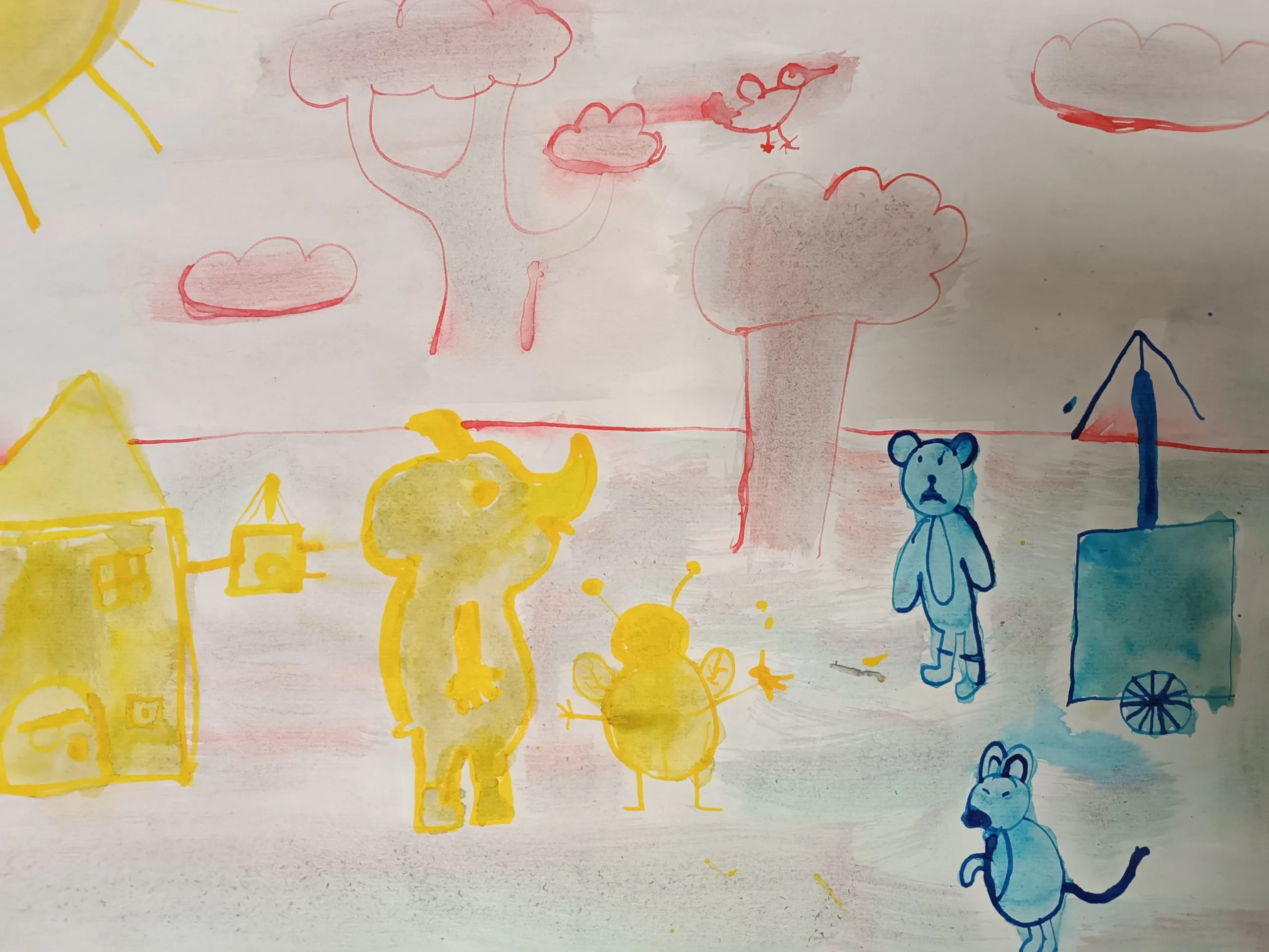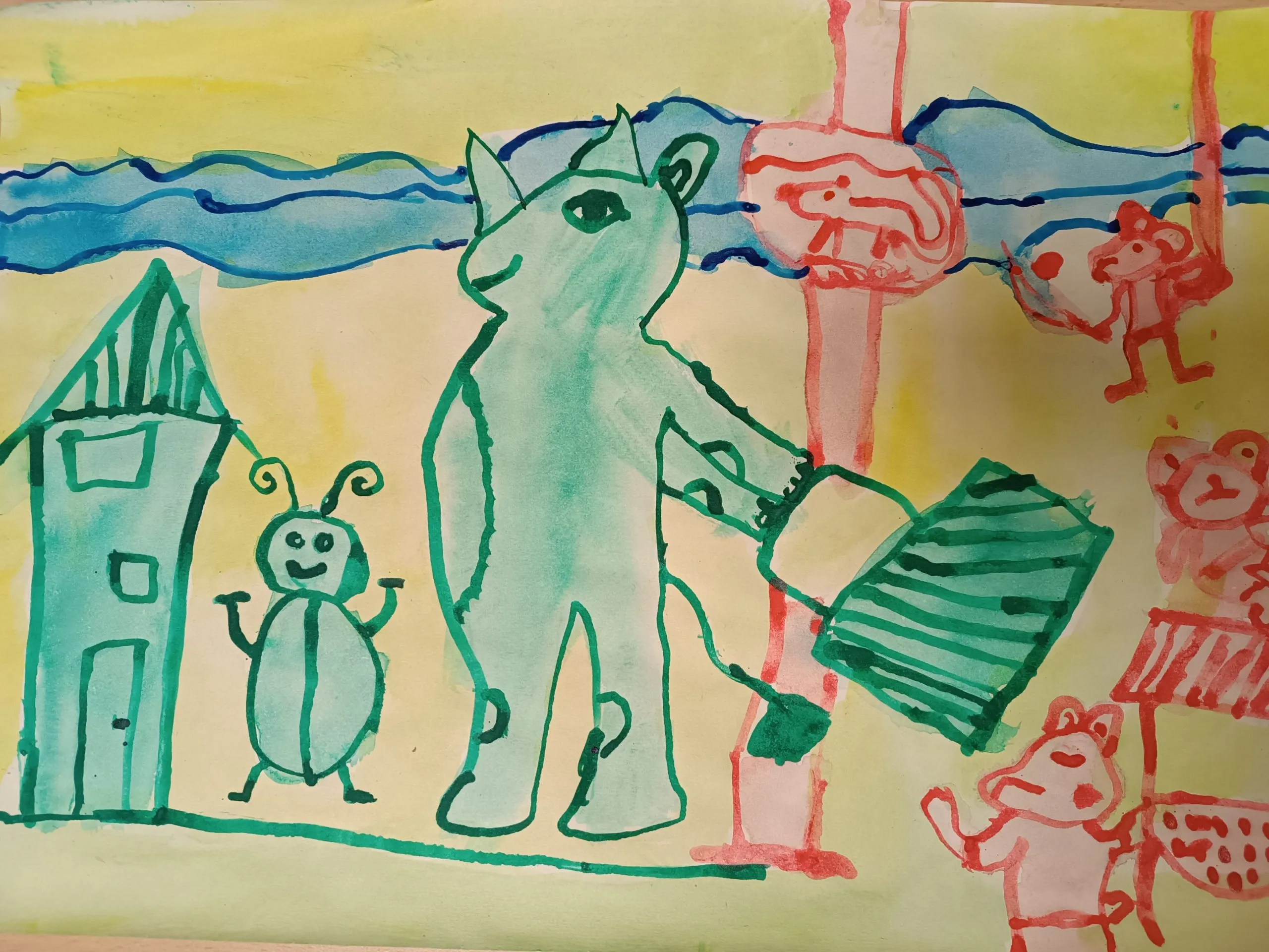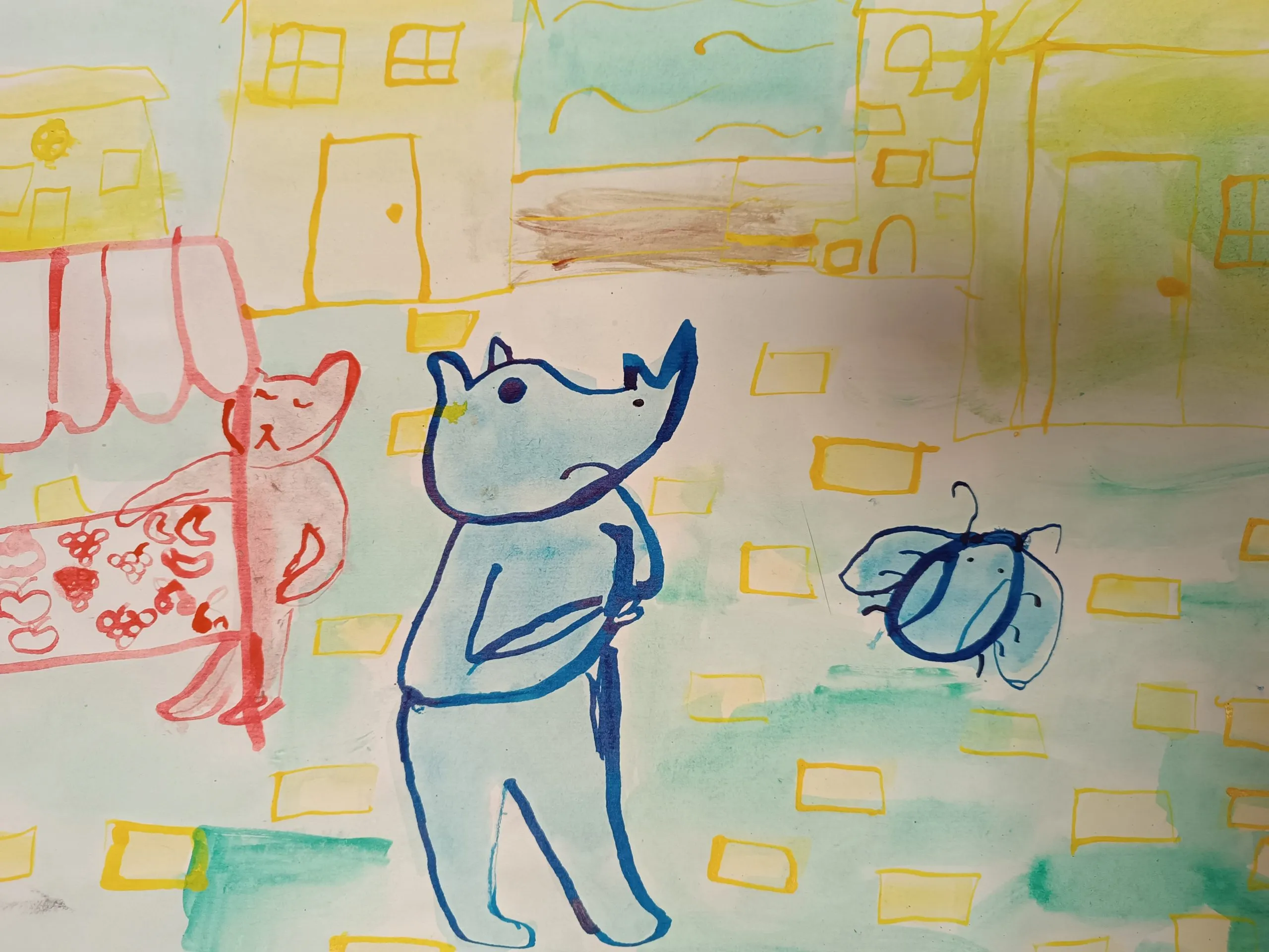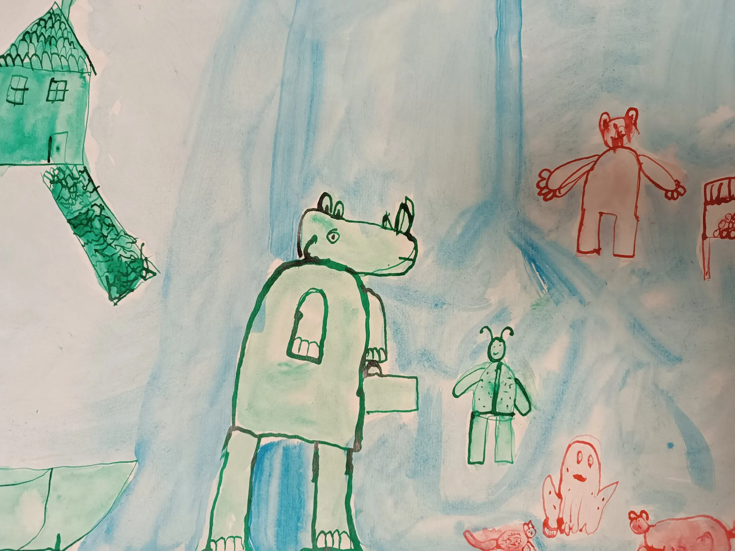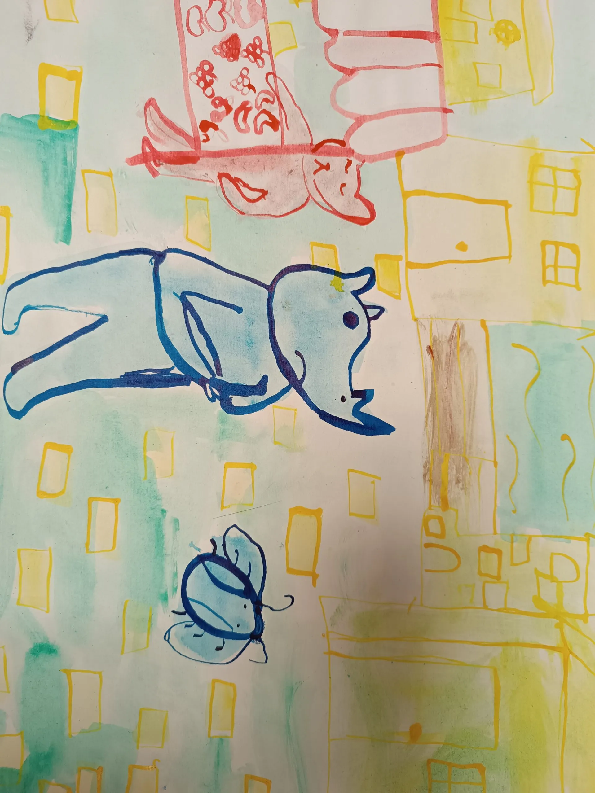 Učenci so prebrani odlomek zgodbe ilustrirali in barvno ponazorili nasprotja.