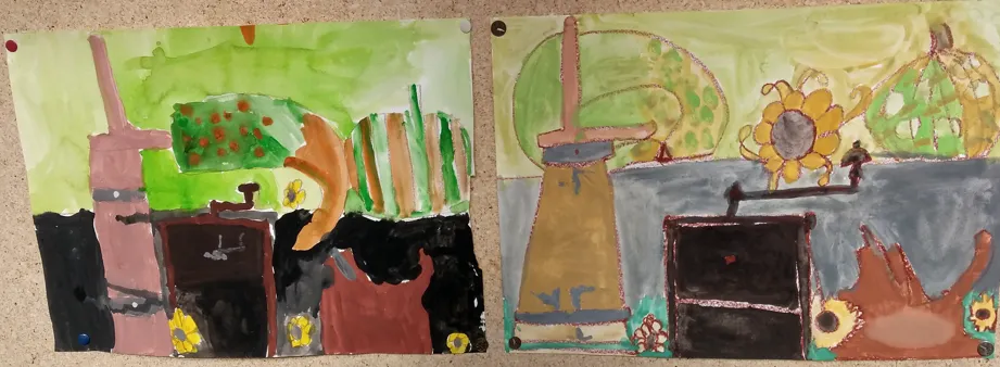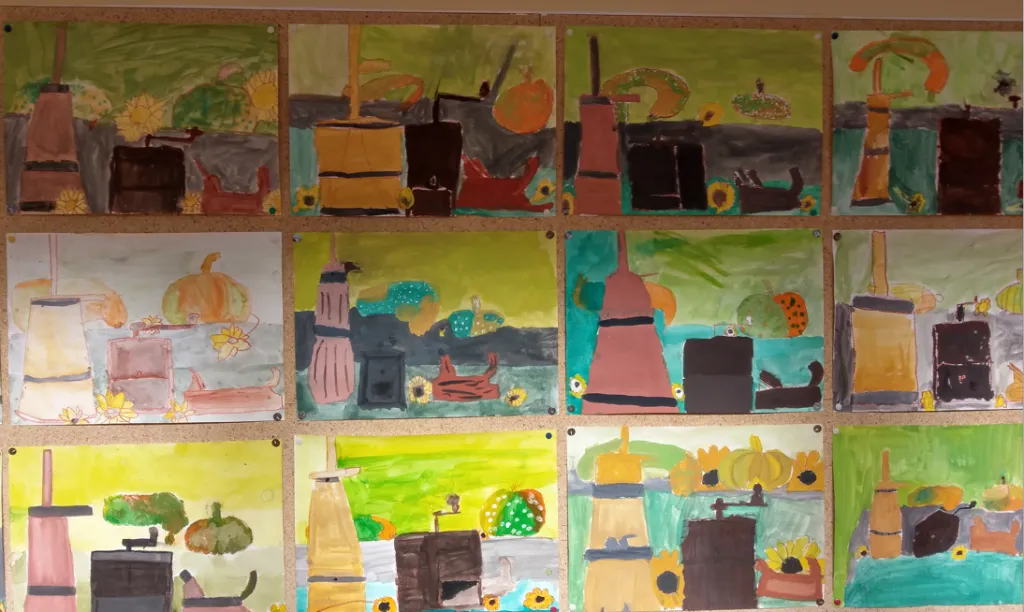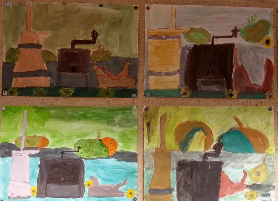 Učenci opazujejo svetlejše in temnejše barve v svoji okolici. Barvni krog je sestavljen iz svetlih in temnih bav, ki so močne zasičene. Te lahko svetlimo in temnimo. Ob predstavljenem likovnem problemu so nastale repe velikanke. Učenci so zamešali barvni odtenek in ga barvno stopnjevali.