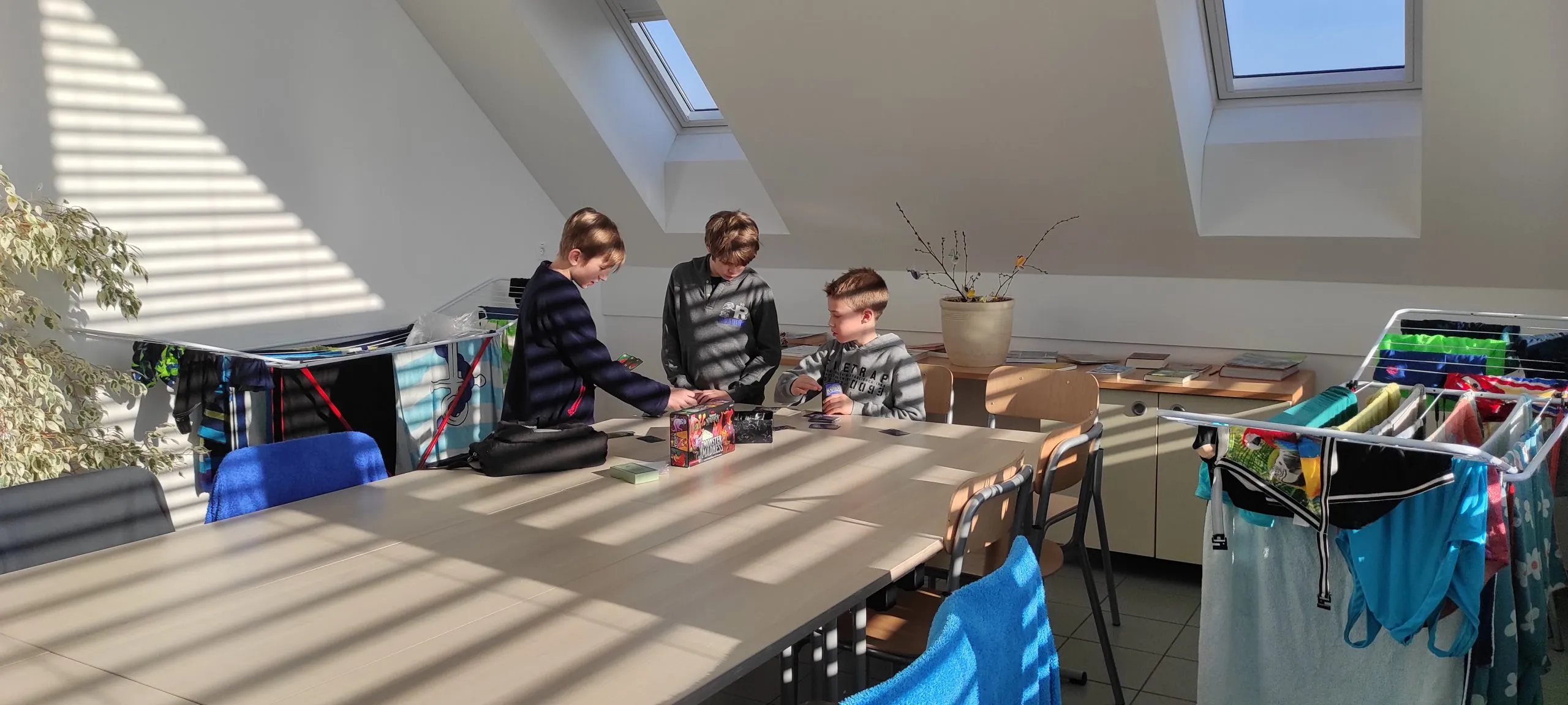 Za nami je mirna noč, vstajanje ob pol osmih in bogat zajtrk. Vmešana jajčka, čokolino, koruzni kosmiči in kruh z namazi po izbiri. Pozdravilo nas je sonce. Dopoldne bodo otroci preživeli na plavanju.