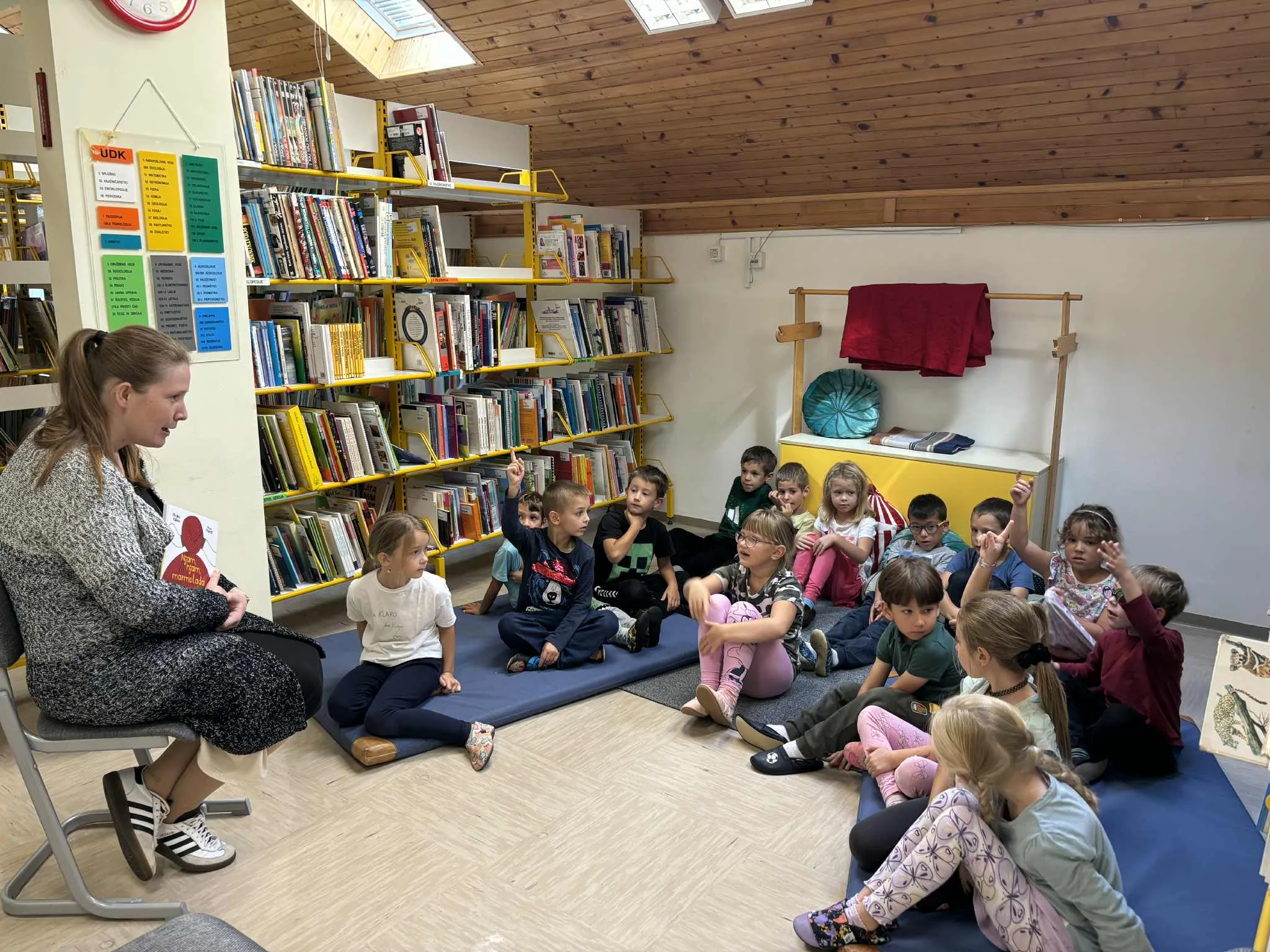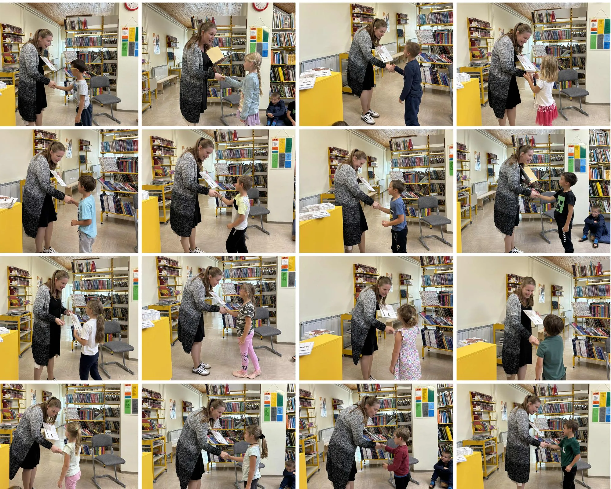 Učenci prvega razreda so se v tednu začetka Bralne značke prvič srečali s šolsko knjižnico. Knjižničarka jim je predstavila pravila knjižnice in jim razkazala knjižnične prostore. Prvošolci so tudi prisluhnili pravljici Njam njam marmelada avtorice Majde Koren. Ob koncu obiska so knjižničarka in učiteljici učencem zaželeli veliko branja in prijetno ter vestno opravljanje Bralne značke. Prvošolcem je društvo Bralna značka, tako kot vsako leto, tudi letos podarilo popotne knjige. Tokratni je naslov O fantu, ki je imel rad ptičke, avtorja Stanka Pregla in ilustratorke Anke Kočevar.