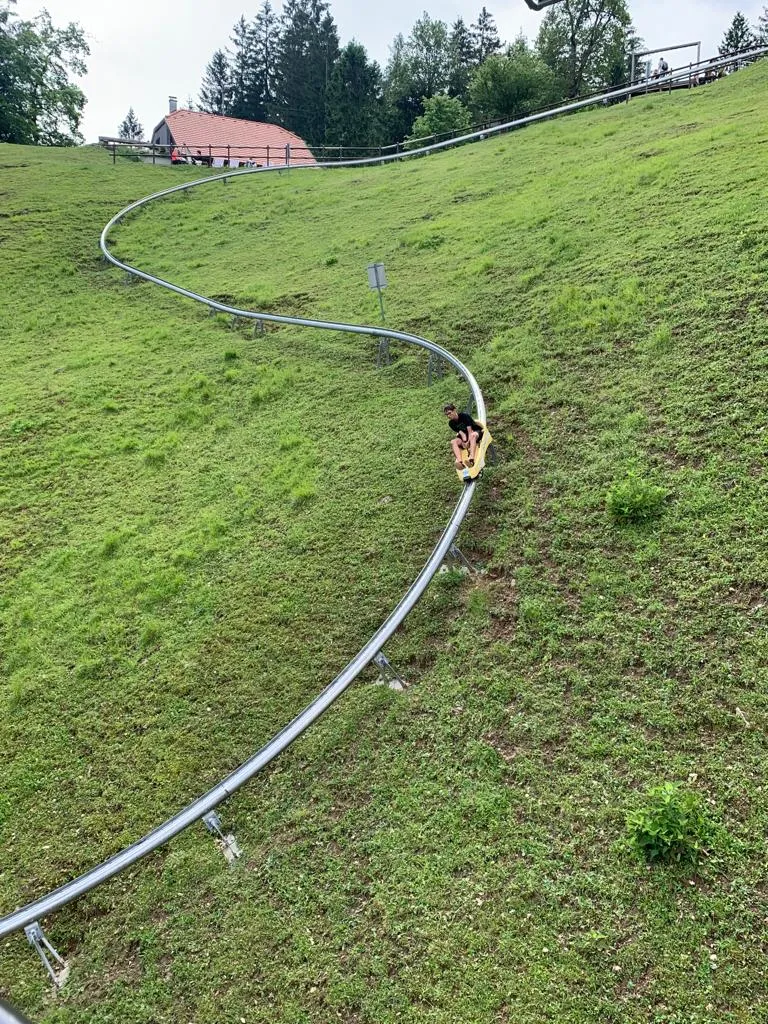 V petek, 9. 6. 2023, smo se odpravili na končni izlet, ki je še do zadnje minute izgledal negotov. Vendar pa smo se opogumili in odšli na lov na sanje med oblake nad Gorenjsko. Najprej smo si pobližje ogledali letališče Lesce. Tam so nam predstavili zgodovino slovenskega letalstva, letala, helikopterje in kako izgleda servisiranje letečih strojev. Sledil je adrenalinski spust na poletnem sankanju po Straži pri Bledu, kjer so učenci in učenke tako uživali, da smo se skupaj odločili jim privoščiti še dvoje dodatnih voženj. Po adrenalinu ob dotiku s tlemi pa so učenci in učenke doživeli še panoramski polet nad Blejskim jezerom. Priložene fotografije so nam posodili učenki Tinkara in Alja. Ko smo bili zopet vsi na trdnih tleh smo se ustavili še na težko pričakovanem obroku v restavraciji McDonald’s, nakar smo se napotili nazaj v Črni Vrh.