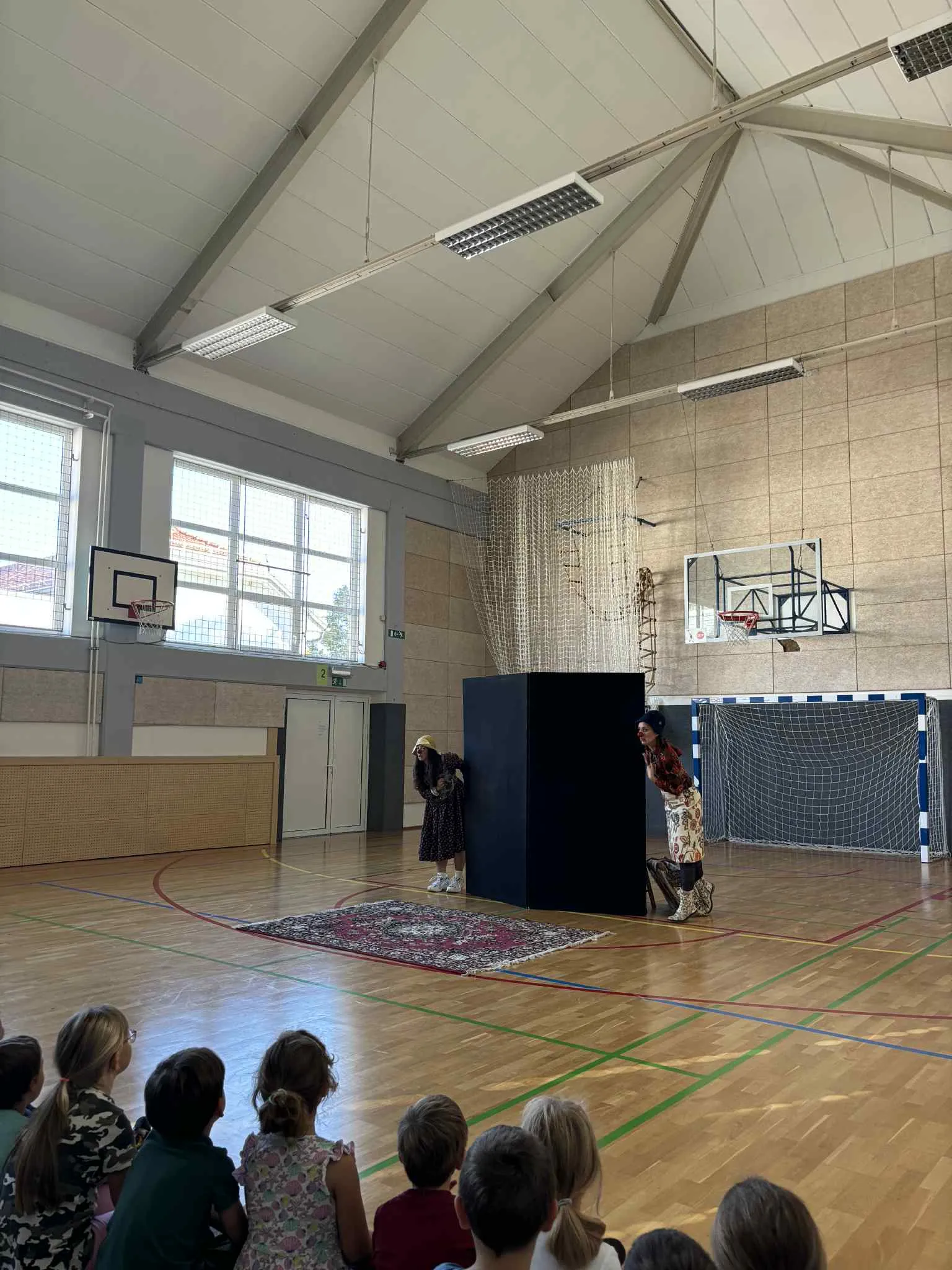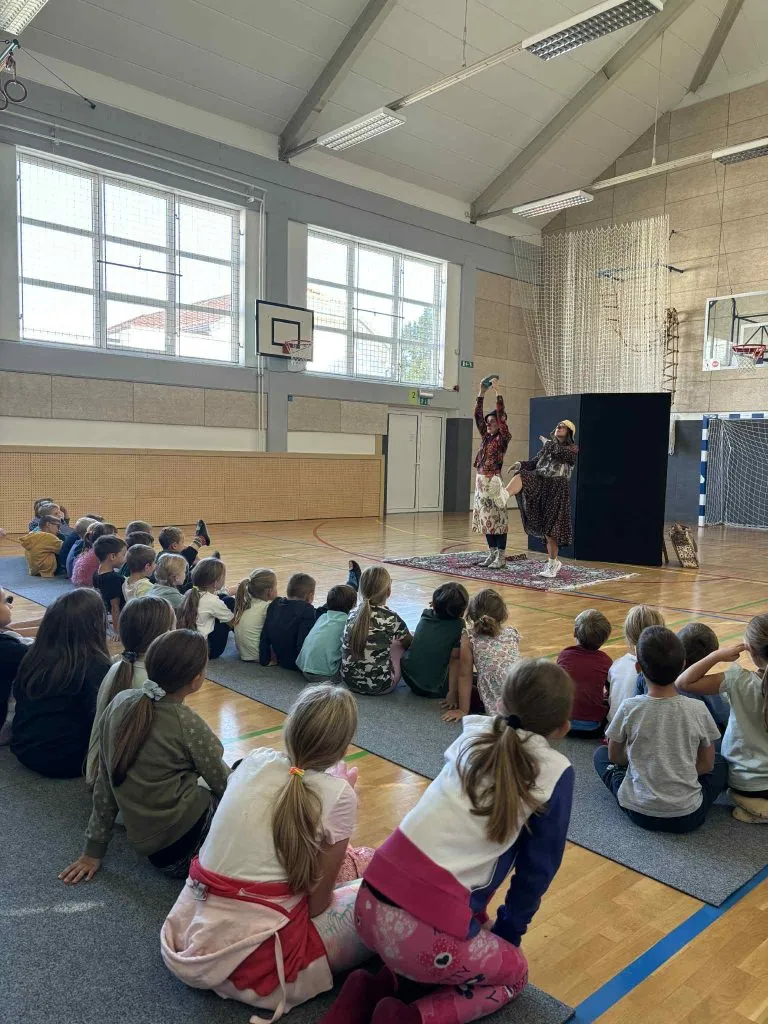 18. septembra 2025 se je naša šolska telovadnica spremenila v gledališče. Po tleh so se razgrnile blazine, pred njimi pa je bila postavljena kulisa. Učenci 1., 2., 3., 4. in 5. razreda so se posedli na blazine in skupaj smo čakali začetek predstave.