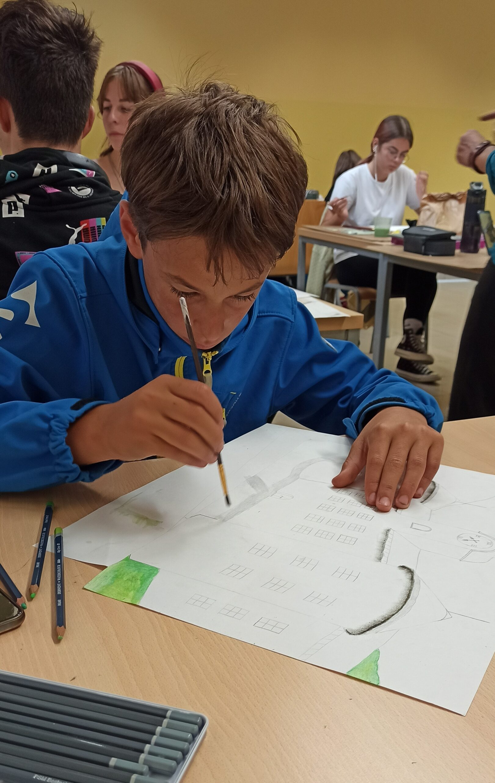 Odzvali smo se povabilu OŠ Idrija, kjer je likovna pedagoginja Irma Gnezda pripravila likovno ustvarjalni dan. Z vrstniki iz Idrije so se tako družili tudi naši dve devetošolki in sedmošolec. Po sprehodu skozi Idrijo, ogledu arhitekturnih znamenitosti in fotografiranju so učenci v prostorih Gimnazije JV prosto likovno ustvarjali in v svoje delo vključili še »nekaj idrijskega«. Ker nam je ponagajalo vreme, razstava vseh del še ni nastala, predvidoma v naslednjem mesecu pa jo bomo gostili tudi na naši šoli.