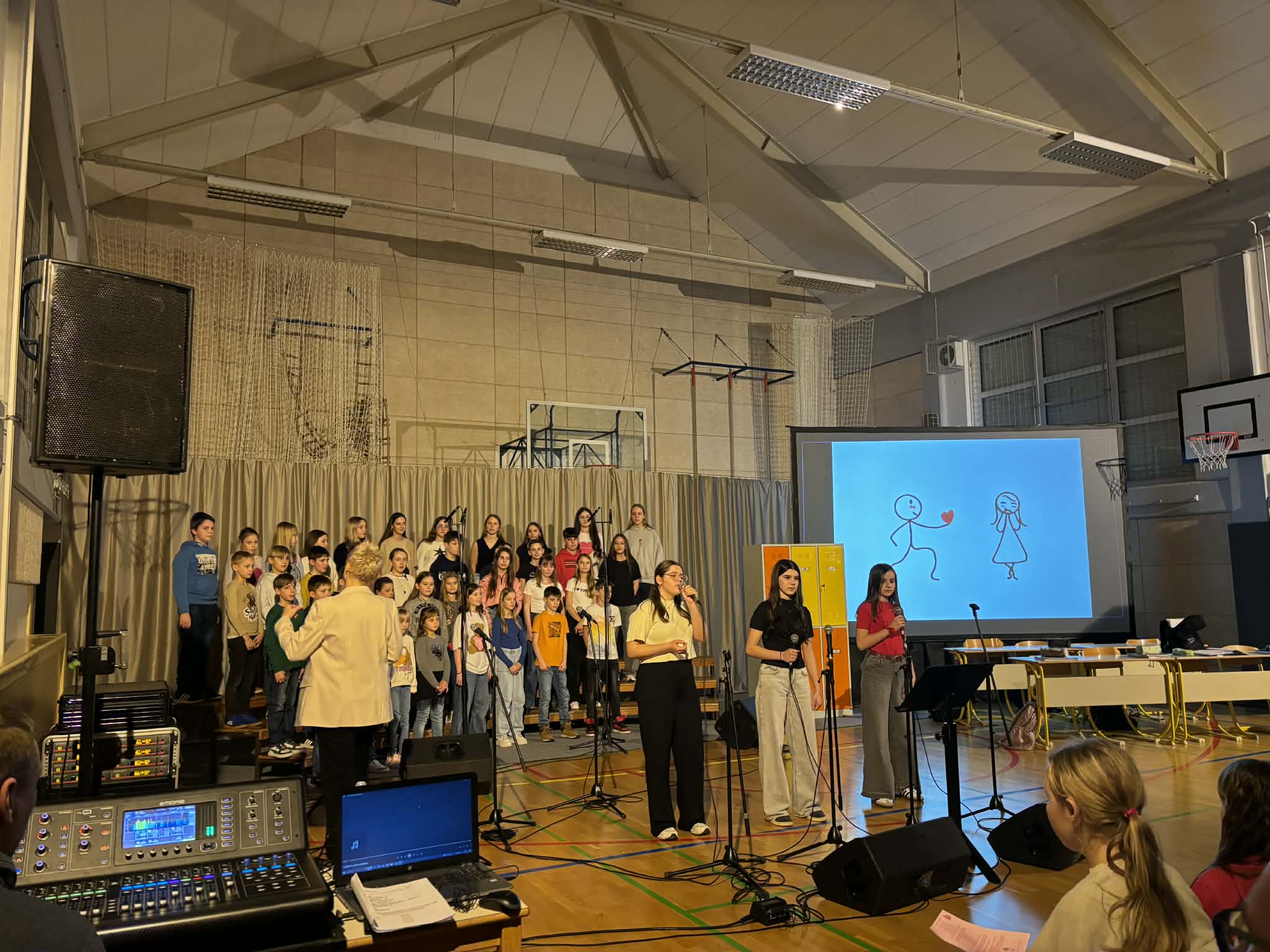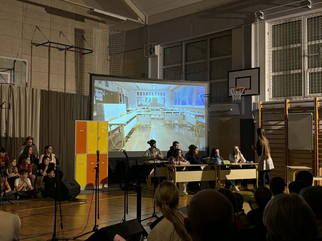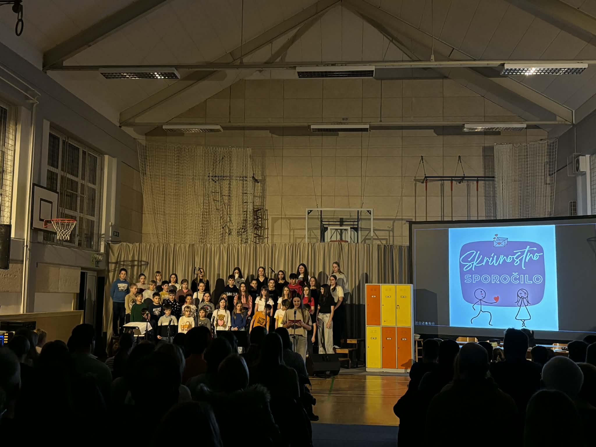 Prostor šolske telovadnice se je ob 18.00 napolnil, luči so ugasnile in predstava se je začela. Čutno povedana Pavčkova klasika, izjemne pevke solistke z mnogimi slovenskimi skladbami ter mladi igralci, ki so si pošiljali skrivnostna sporočilca ter se zaljubljeno gledali, so še tako ravnodušnemu gledalcu odprli srce in mu priklicali nasmešek na obraz.