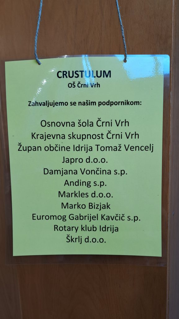 Projekt ArheoDotik je v ekipi Crustulum nastajal več mesecev – od prve ideje, raziskovanja in testiranja do končne predstavitve na državnem tekmovanju. Pri tem nismo bili sami. Okoli projekta se je postopoma spletla velika mreža ljudi, muzejev in prostovoljcev, ki so nam z znanjem, izkušnjami, nasveti in novimi pogledi pomagali razvijati idejo. Prav ta odprtost in sodelovanje so projektu dali širino in globino, zaradi katere smo ga lahko tako samozavestno predstavili na državnem tekmovanju. Na koncu smo se domov vrnili s pokalom, bogatejši za veliko novih izkušenj in ponosni na delo, ki smo ga opravili skupaj kot ekipa.