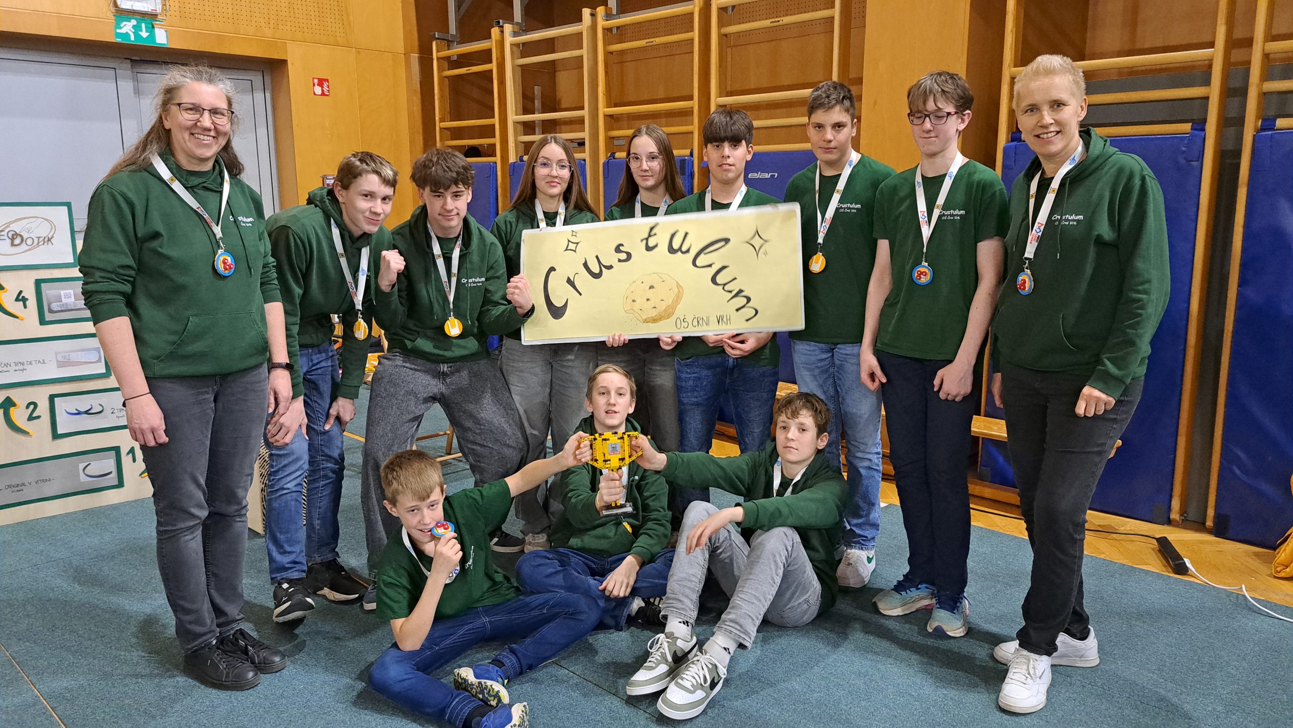 Po dolgem dnevu napetosti, čakanja in razigranega tekmovalnega vzdušja je sledila še razglasitev rezultatov. Takrat je prišel trenutek, ki ga ne bomo zlahka pozabili – naš projekt ArheoDotik je na državnem tekmovanju osvojil izjemno 2. mesto. To priznanje je za našo ekipo Crustulum velik uspeh in potrditev večmesečnega dela, raziskovanja, preizkušanja idej ter sodelovanja z različnimi strokovnjaki. Poseben ponos pa nam daje dejstvo, da prihajamo iz ene najmanjših šol med sodelujočimi ekipami. V konkurenci večjih šol in zelo močnih ekip je zato ta rezultat še toliko večji dosežek in dokaz, da lahko z dobrimi idejami, vztrajnostjo in ekipnim duhom tudi majhna šola poseže med najboljše v državi.