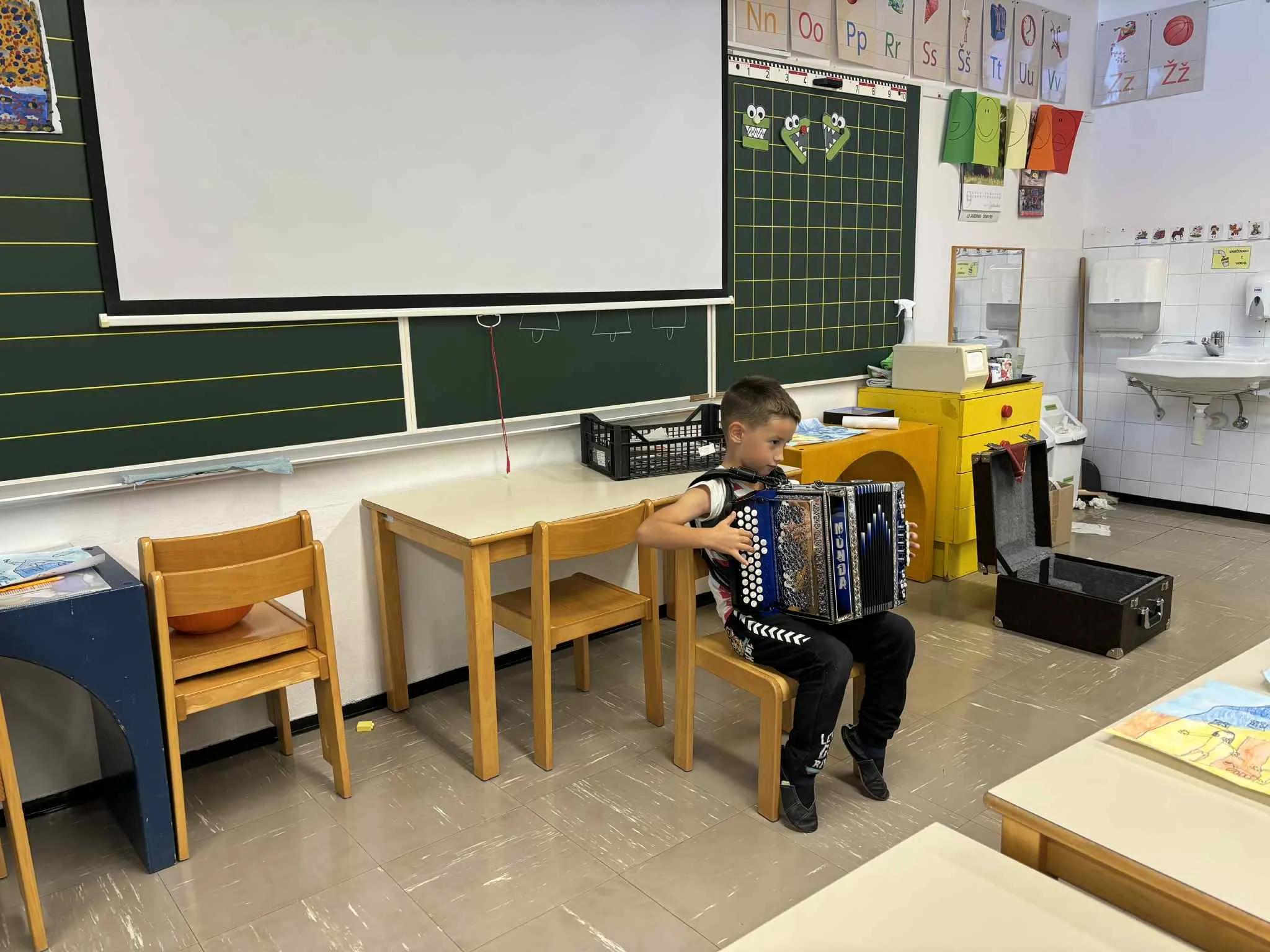 Prvošolec predstavi harmoniko