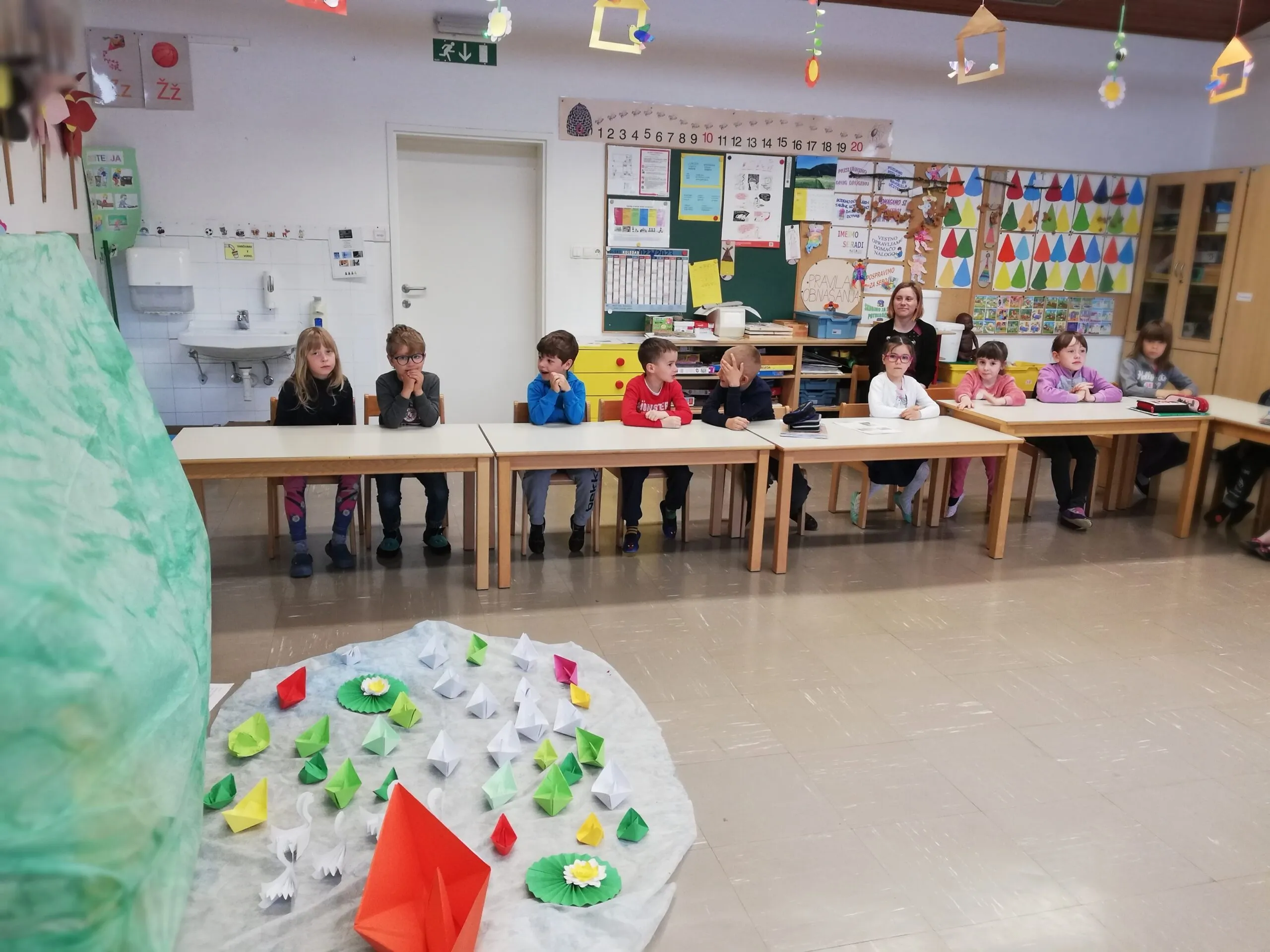 Sledila je odlična zgodba. Bobek in barčica je pravljica Anje Štefan o dečku Bobku, ki živi ob jezeru. Po vodi spušča svoje male barčice in sanjari, da je kapitan. Ko najde pravi čoln, želi z njim odpluti po jezeru. Pogumno sede vanj, a takoj ko zapluje, so tu že miška, žabica, za njo zajček, lisica in medved. Jih ni za čolniček malo preveč? Kako se je zgodba končala, pa vedo otroci, ki so na koncu pripovedi navdušeno zaploskali.